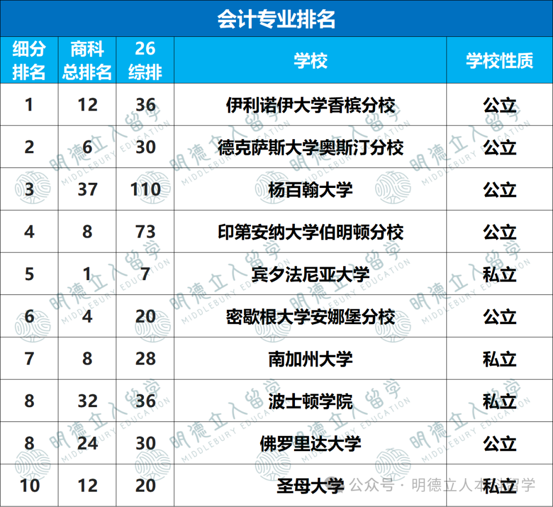 可惜的是,去年在前10的纽大今年退出了会计细分排名前10行列。