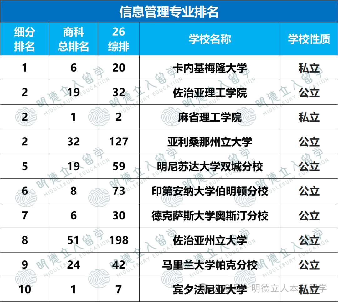 另外亚利桑那州立大学系统在管理信息专业表现强劲,亚利桑那大学与佐治亚理工、MIT并列排在第2!