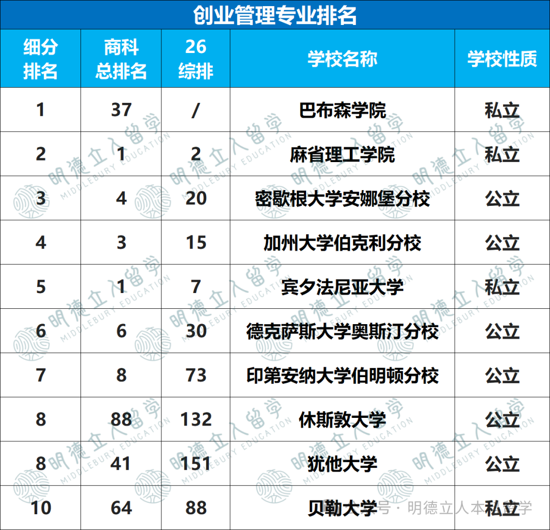 巴布森虽不参与 US.News 综合大学排名,但在商科领域声誉极高,特别是在创业管理方面,连续多年在全美创业管理专业排名中位居前列。