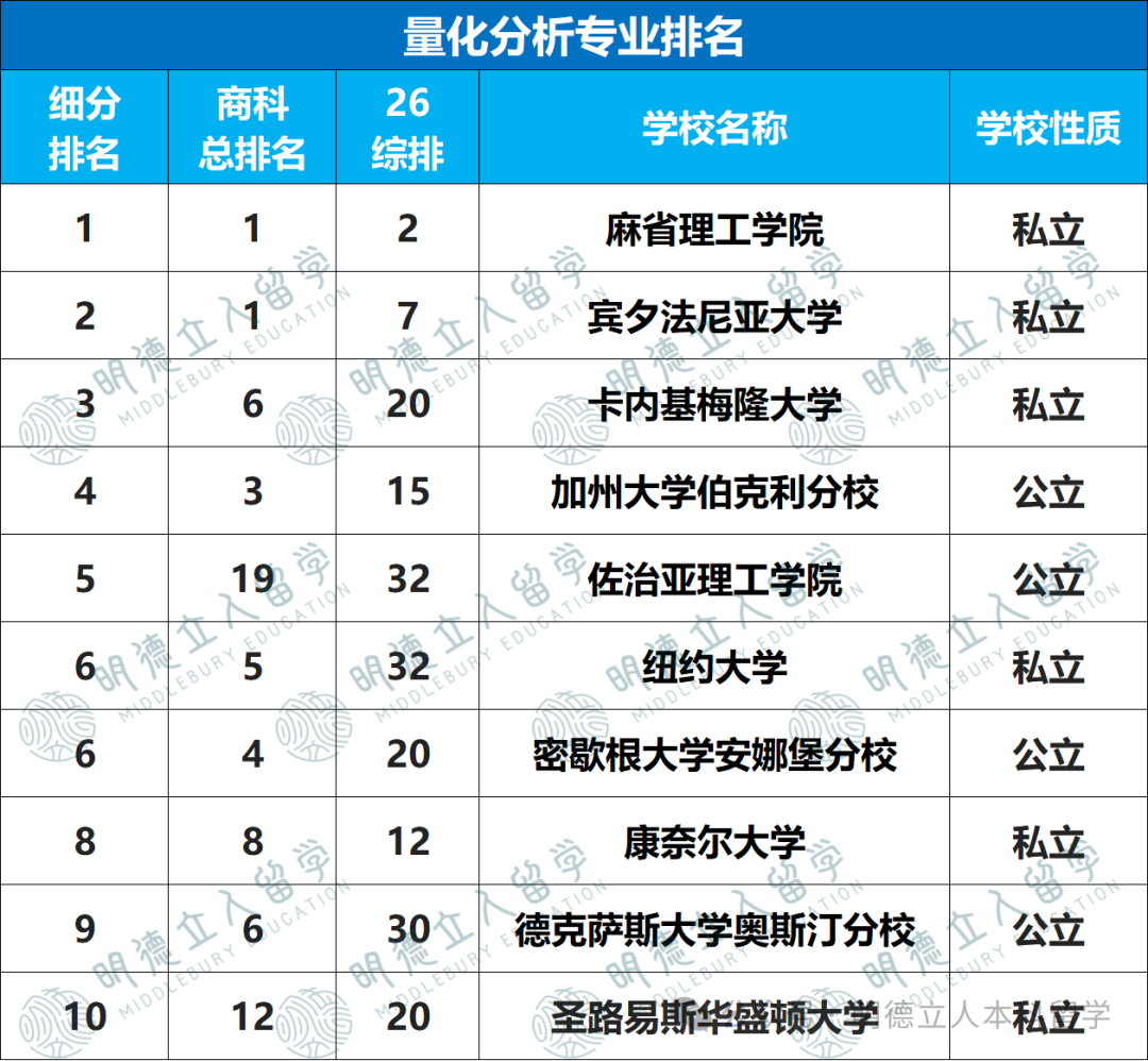 量化分析和前面管理信息、商业分析专业一样,也是理工强校居多。