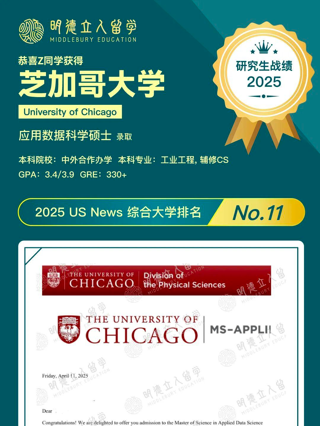 与此同时,众多来自中国985/211高校的合作项目毕业生也取得了傲人的录取成绩,例如川大与匹兹堡/密歇根,中国农业大学与普渡大学合办项目等。