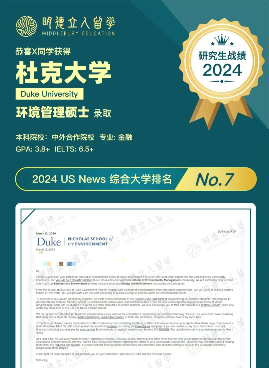 香港大学-气候治理与风险管理;宾夕法尼亚大学-环境研究;约翰霍普金斯大学-公共管理;芝加哥大学-公共政策;故事链接:2024战绩 | 宾大JHU双喜临门!申请季紧急换机构?明德神操作1个月极限拿到梦校offer