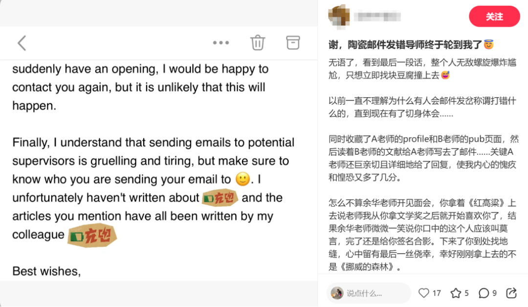 教授秒回问我是不是发错人了,祝我申请顺利...