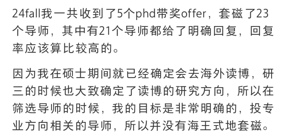 大家可以在和一个教授沟通联系结束后,或者明显感觉这个教授不会回复后,再继续联系下一个,千万不要同时在线N个,毕竟学术圈就这么大,啥都投有种不靠谱的感觉。