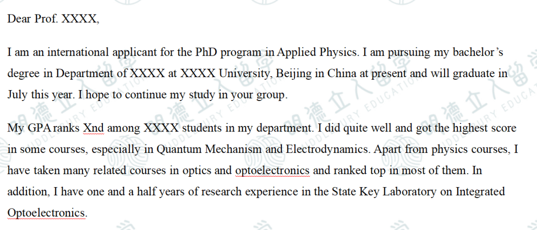 在问候语和祝福语之间就是我们的邮件正文,这部分是重头戏,通过具体实例来展现与教授研究领域的契合度。主要囊括以下几点内容: