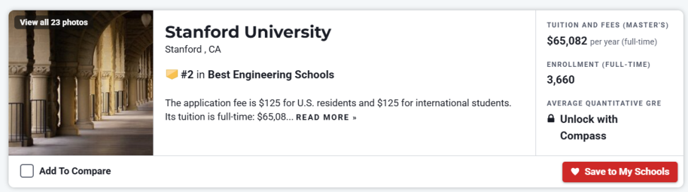斯坦福工程学院全美第二名!是最出名的三所理工神校之一。