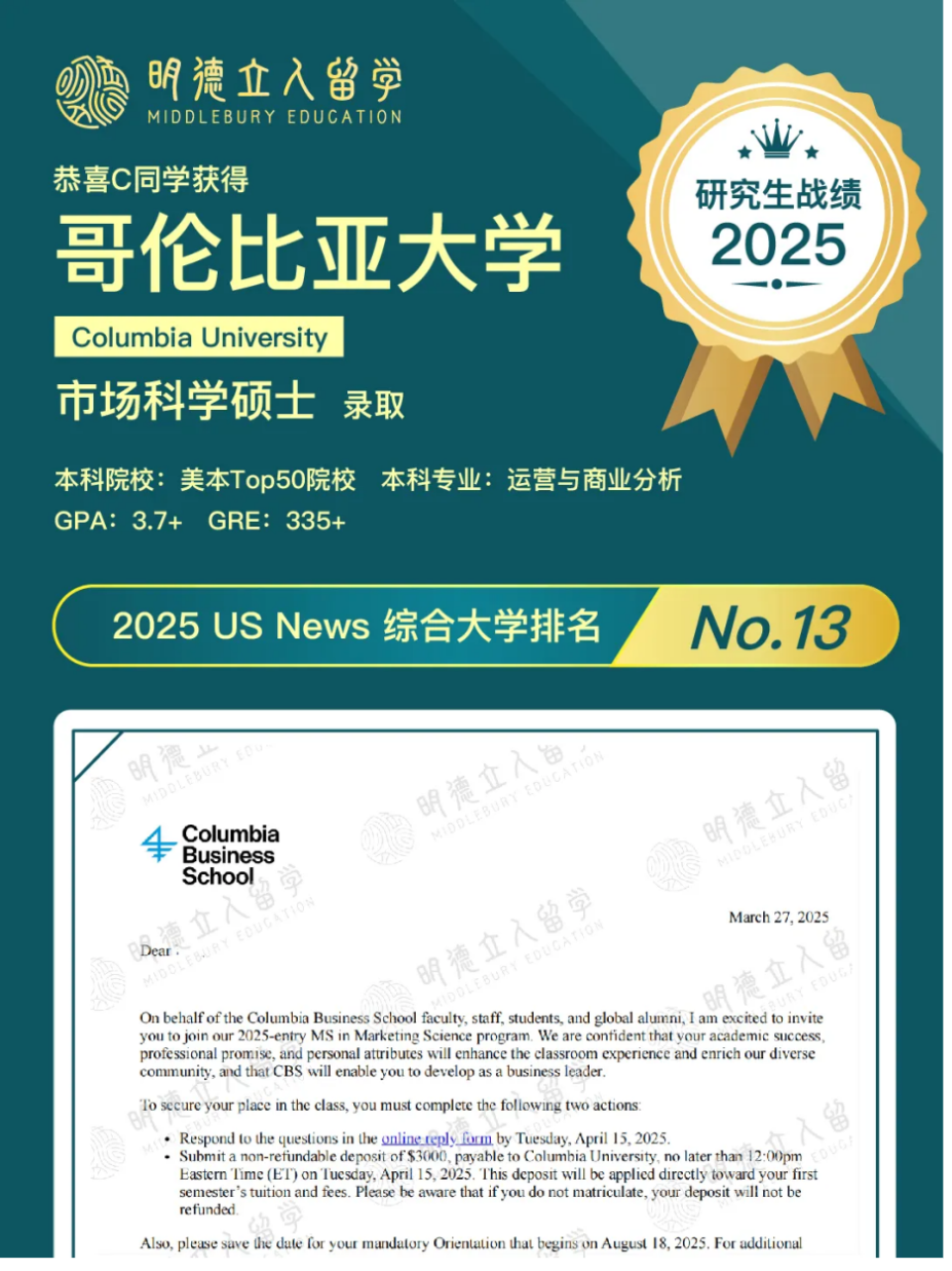哥伦比亚大学的市场科学硕士(MSM)该项目开设在哥大商学院下,2025QS全球专排第五,全美第一!