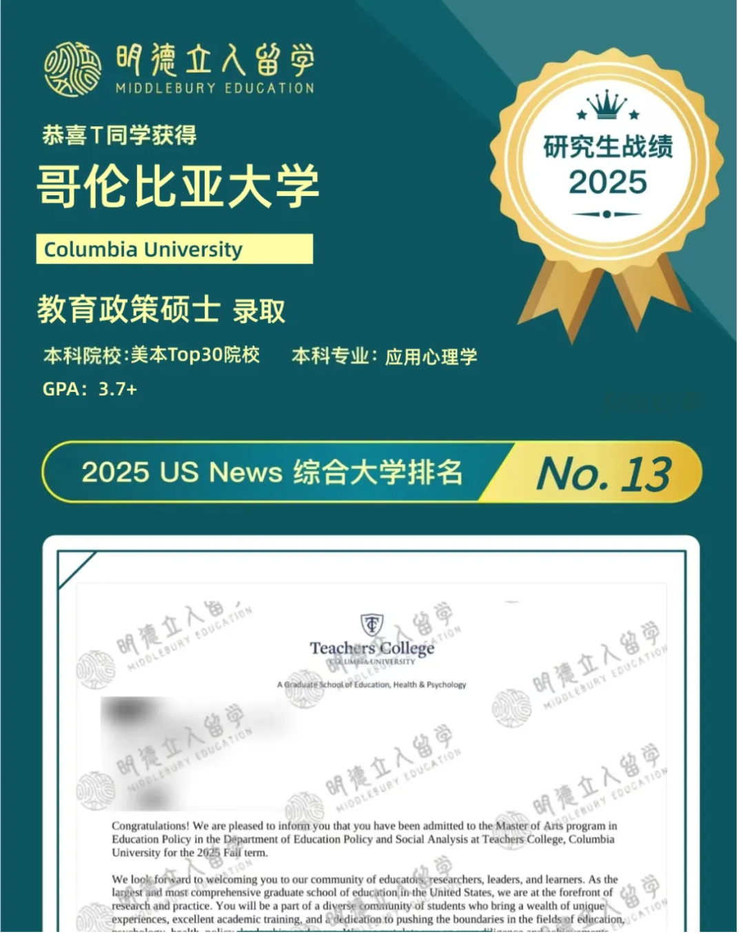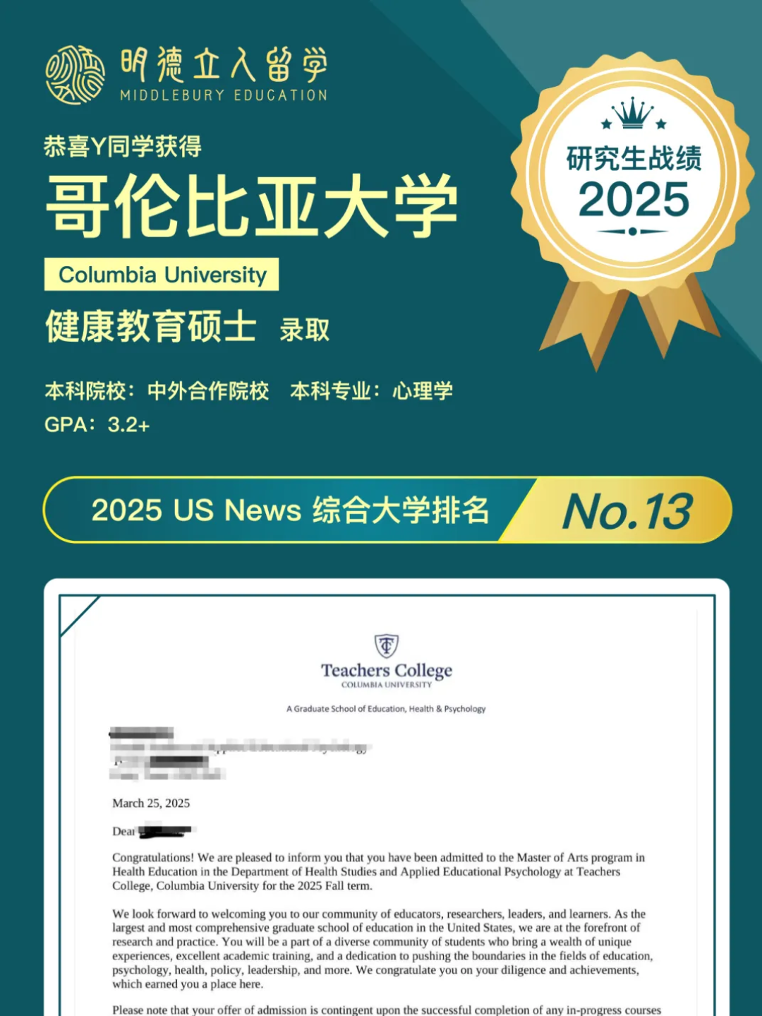 2025战绩 | 心理学冲藤,哈佛Mentor助我上岸哥大TC,全美第一教育学院我来了!