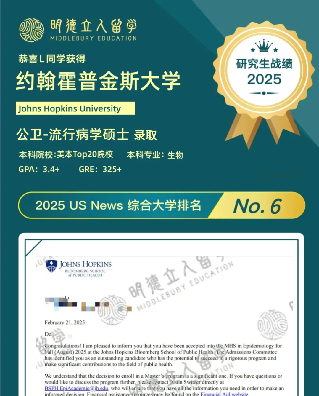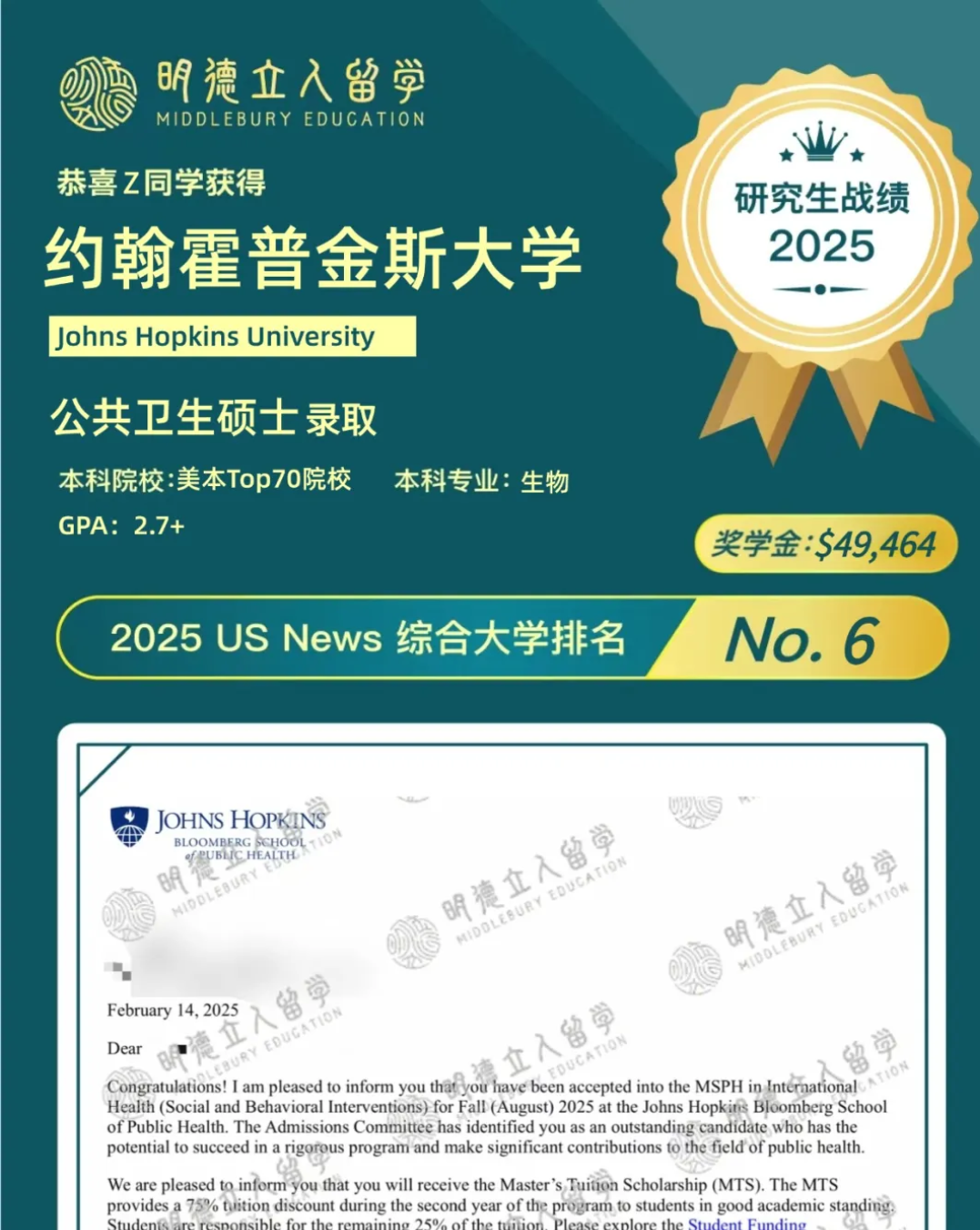 2025战绩 | GPA 2.7+逆袭全美Top1 JHU公卫+Tufts,带奖51W!