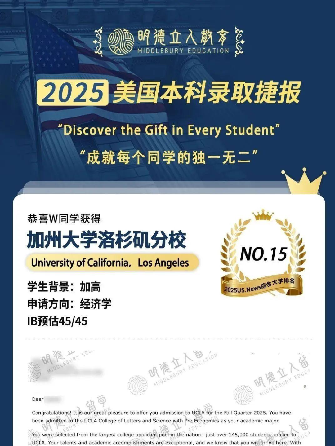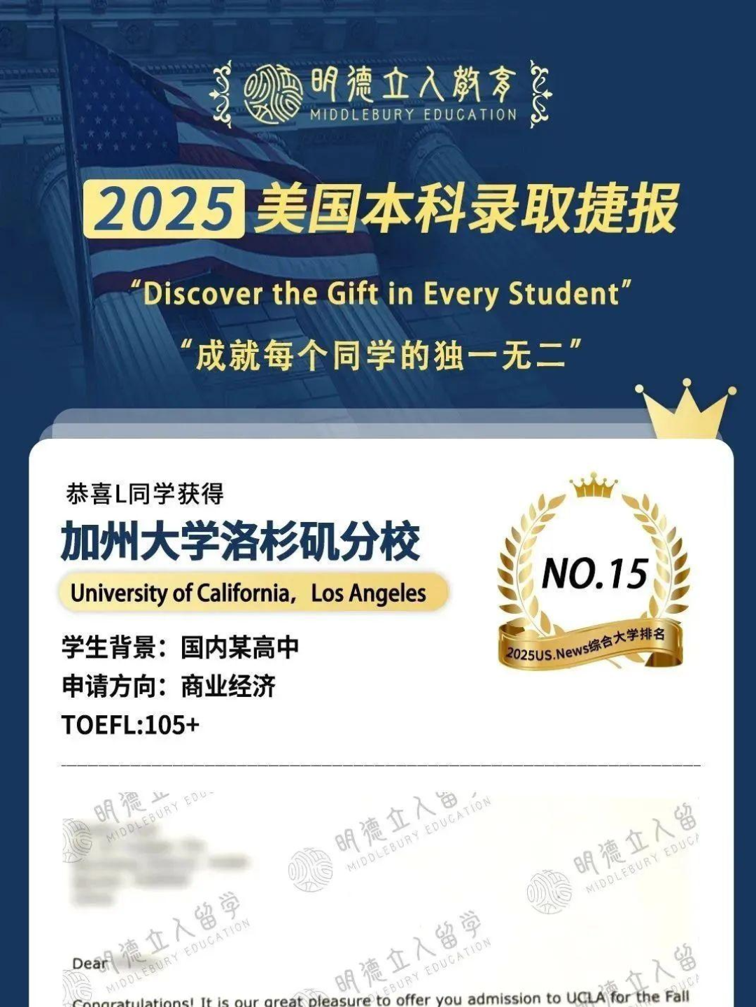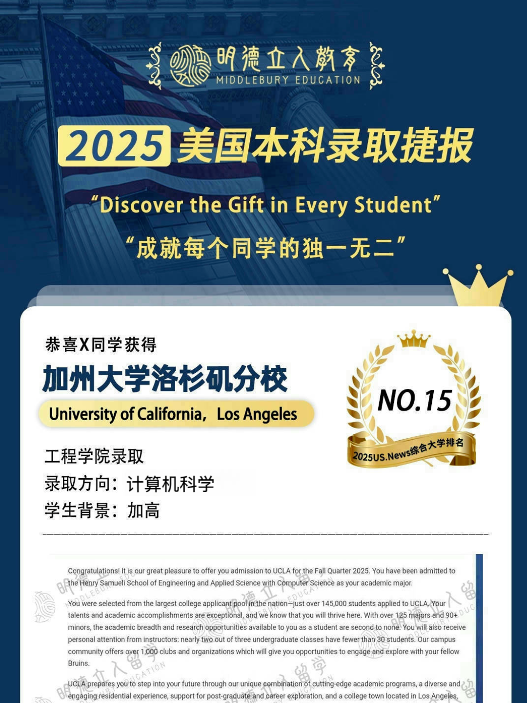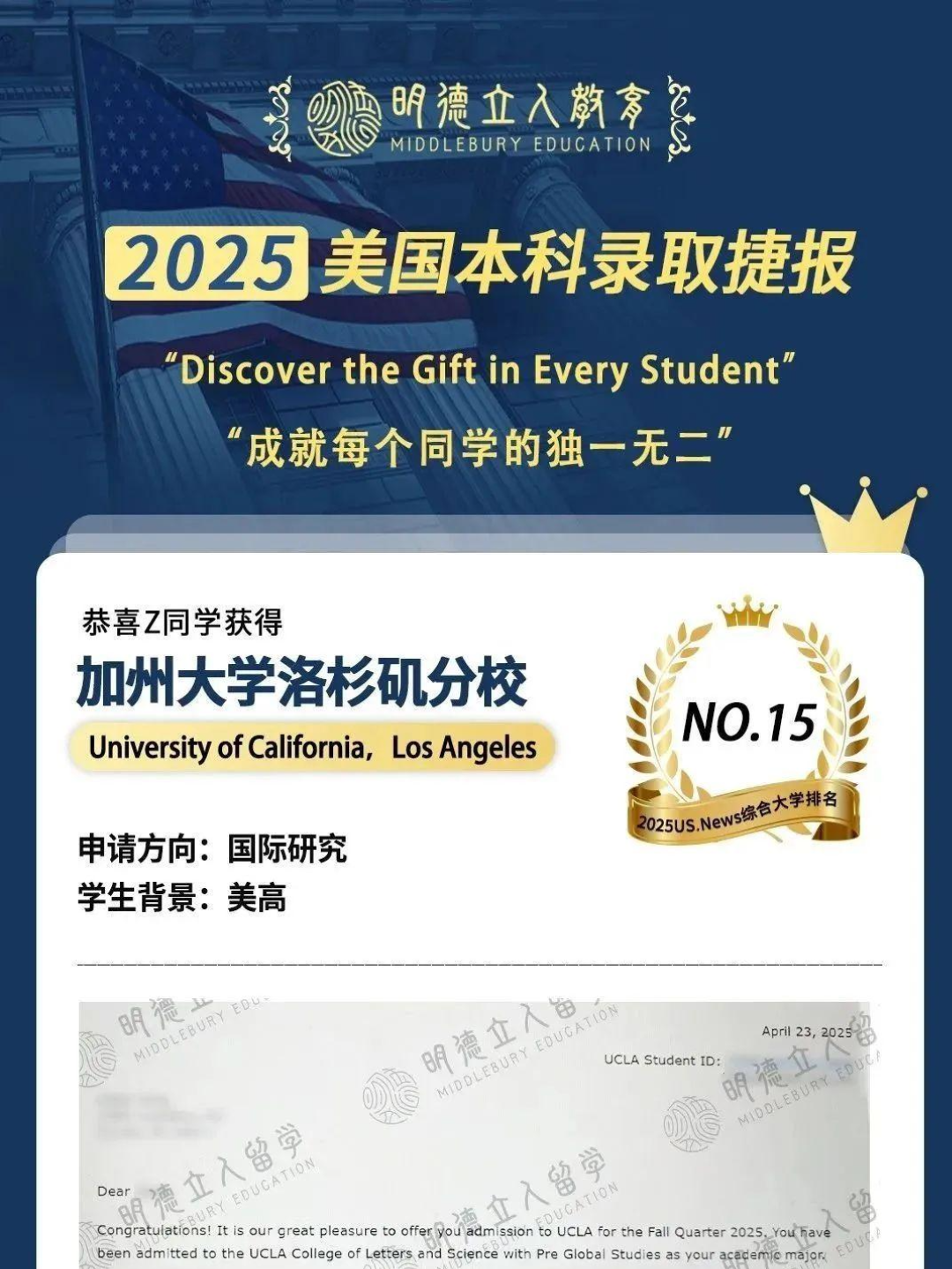 而在刚刚过去的2025申请季,明德立人本科申请就有5位学员拿到了UCLA的录取。