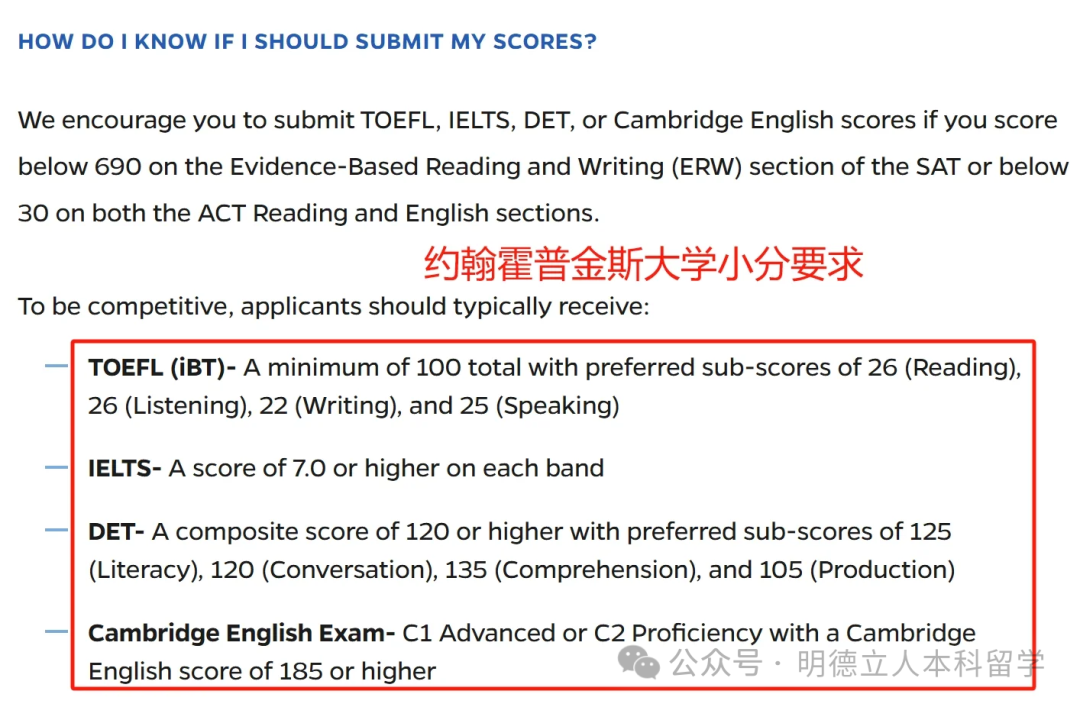 除此之外,还有不少学校对各单项小分有单独要求——托福小分不到25就完了?JHU、卡梅..17所大学卡小分,连保底校也有要求!(点击蓝字即可阅读详情)