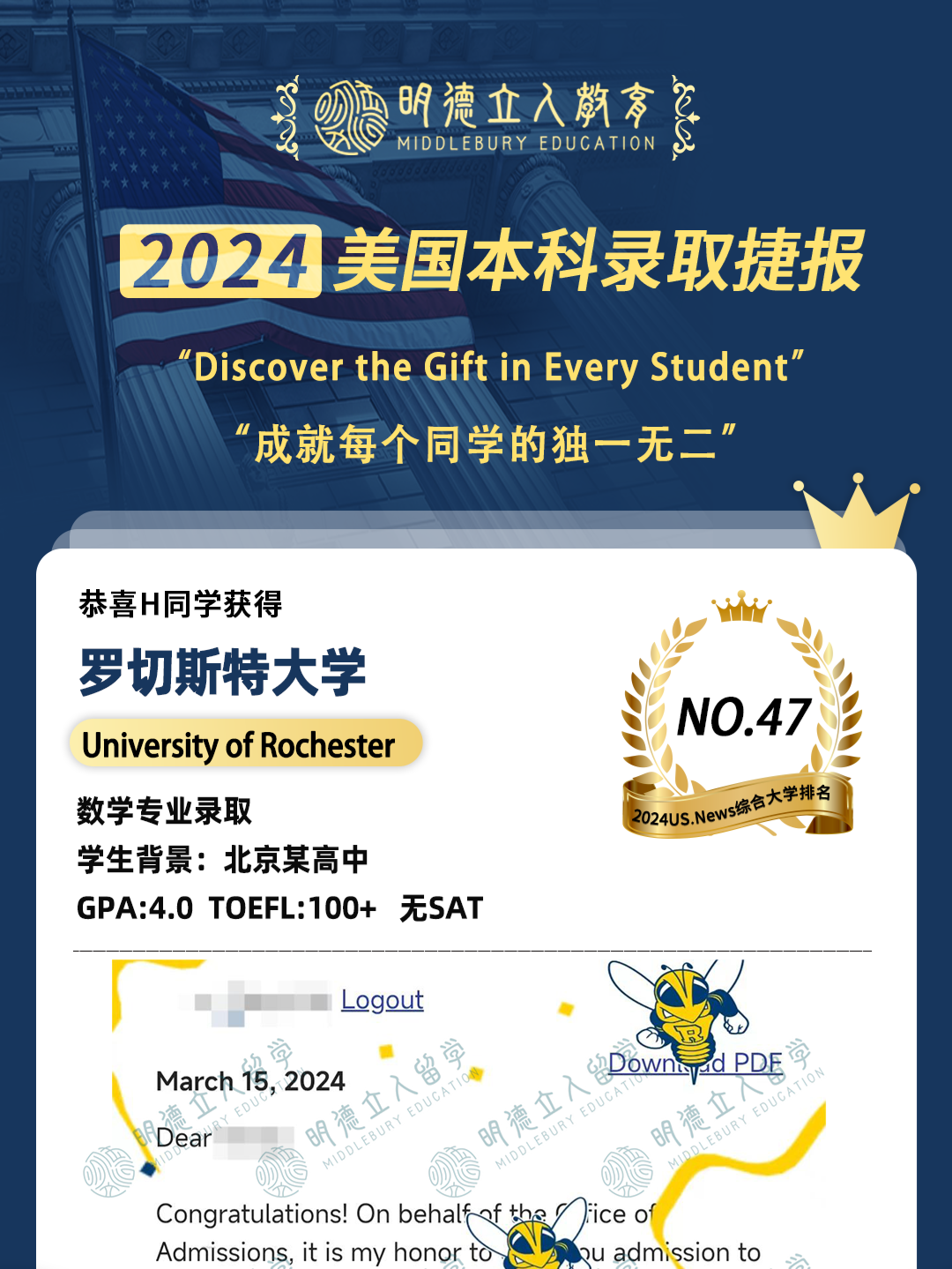 同时,为他规划了明德的定制科研项目,精准地匹配了他的兴趣与申请需求,最终助力他在国际期刊发表论文,极大地强化了他在应用数学领域的学术形象。