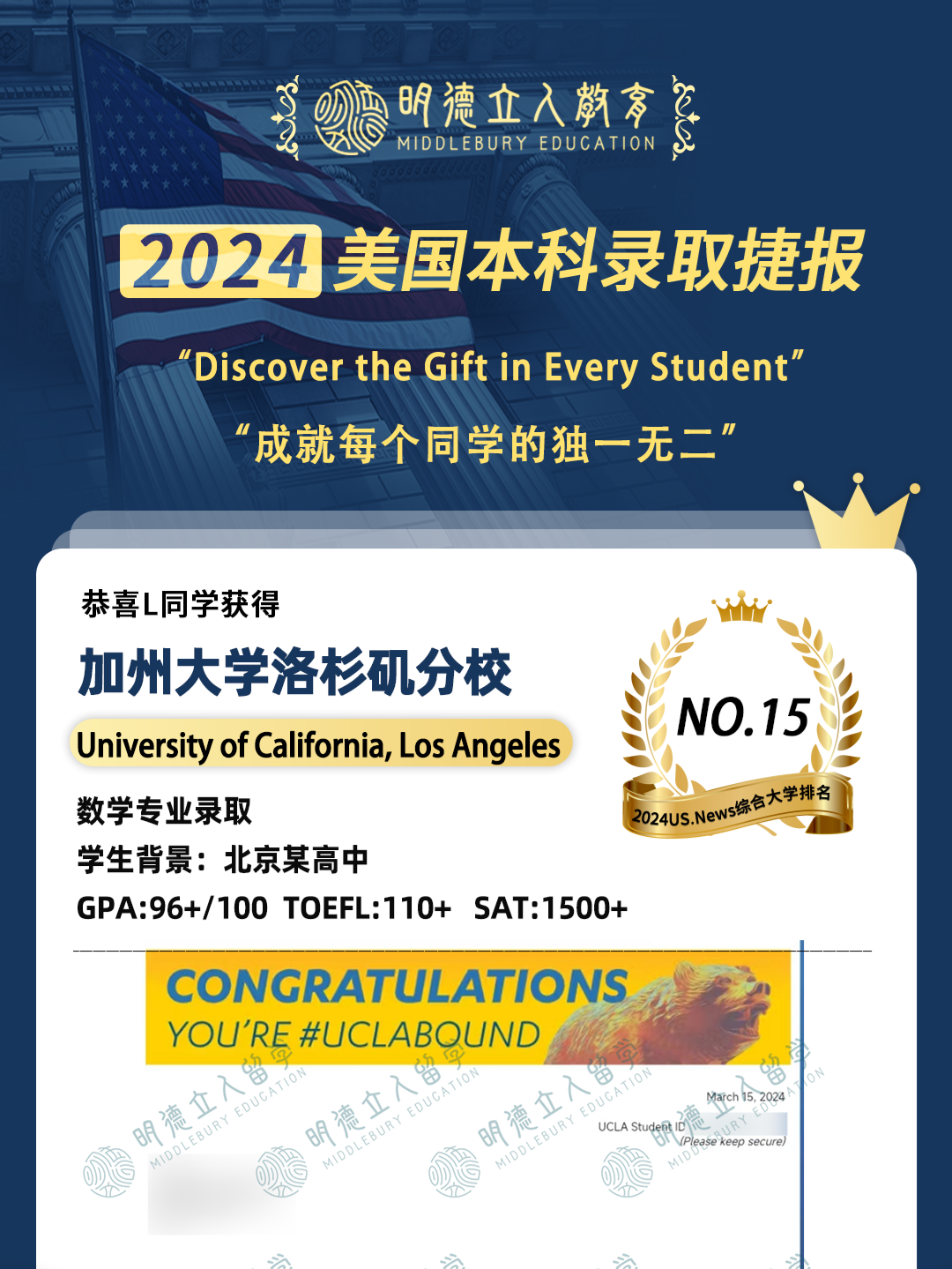最终,这份精心规划、充满温度打造的申请材料,打动了UCLA的招生官。
