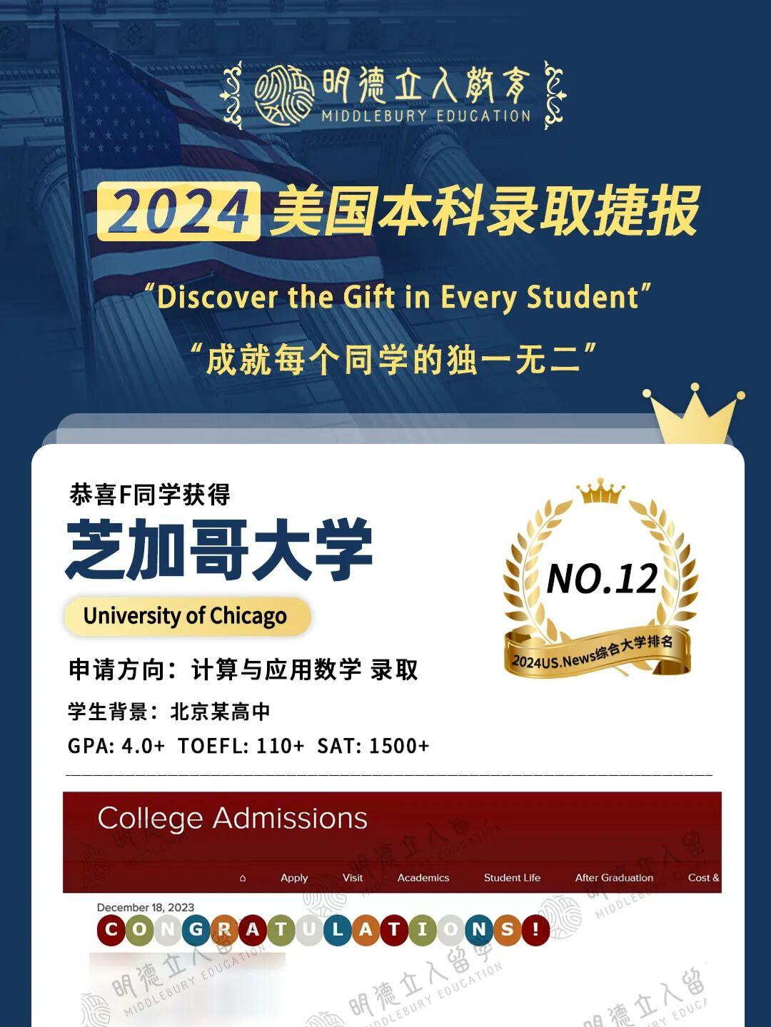 录取芝加哥大学的F同学--选择应用数学+CS方向,未来想进入科技大厂实习。