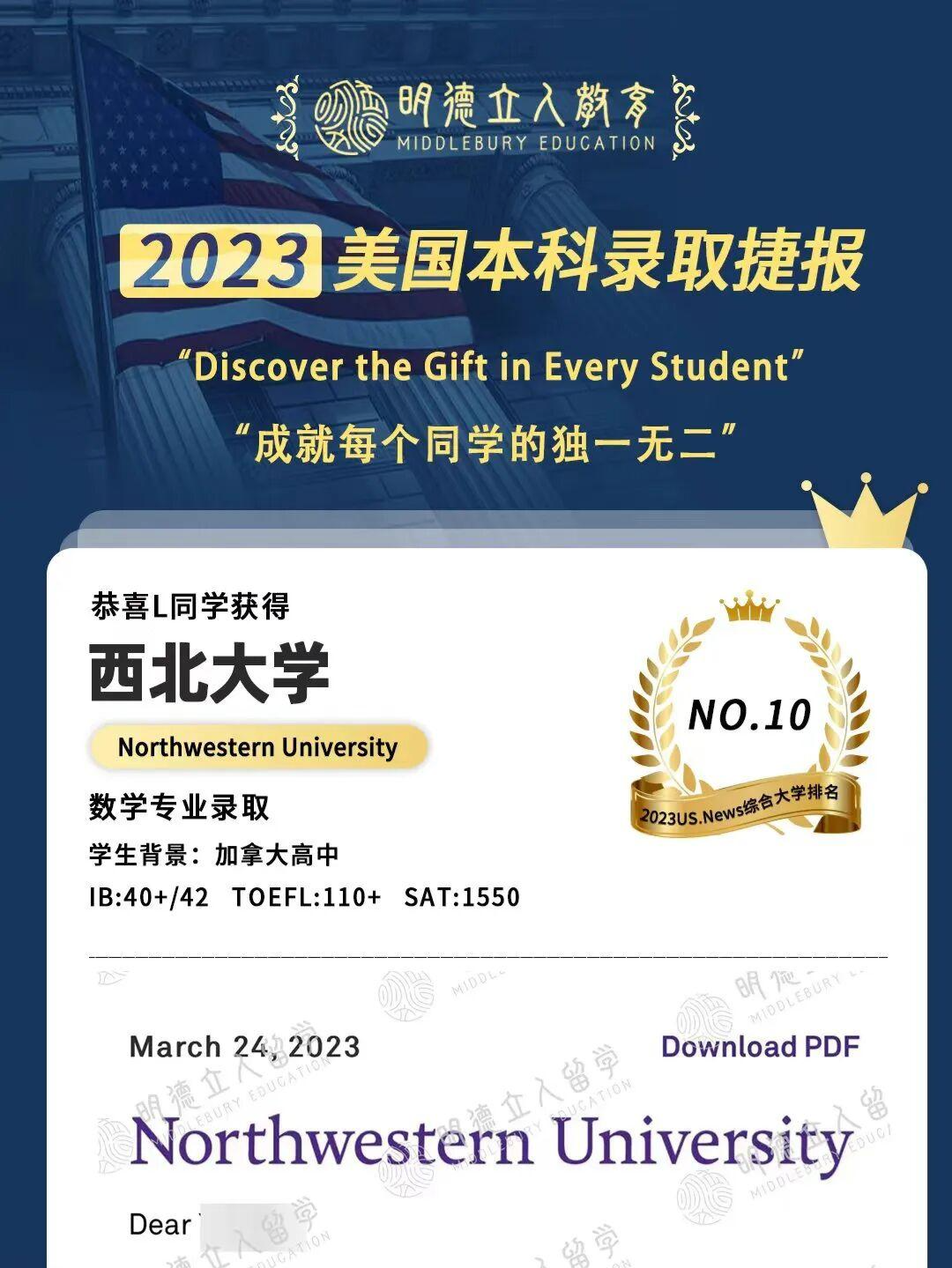 录取西北大学的L同学--走的是数学+经济,目标是去咨询公司做金融建模分析,后转入量化基金。