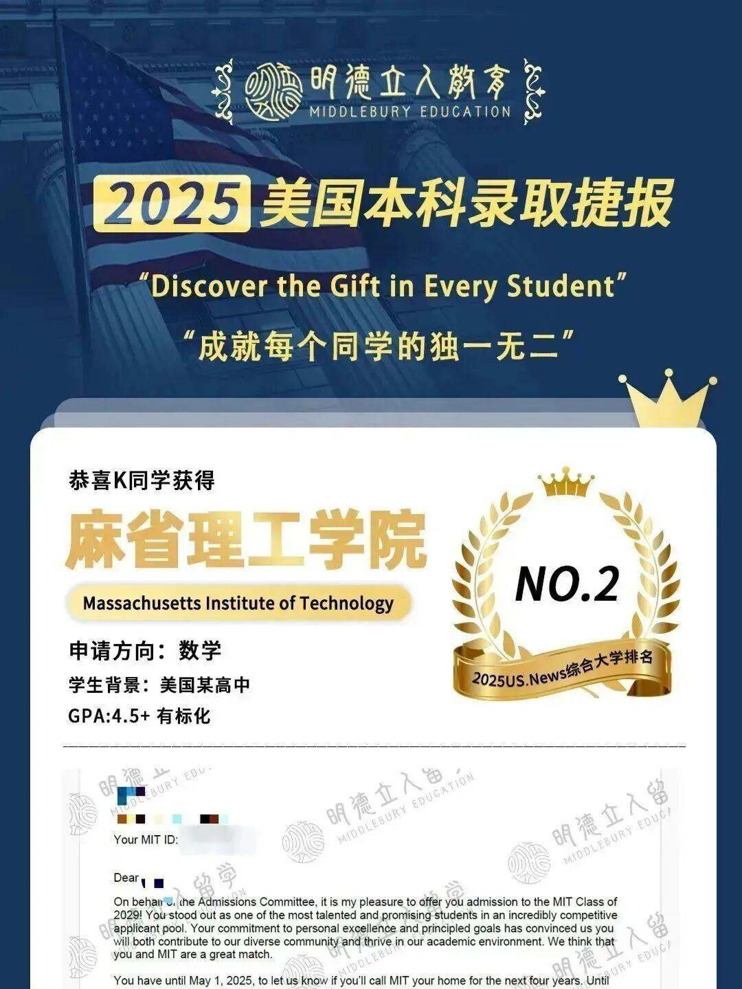 而明德在过去几个申请季中也有许多家庭看中了数学专业的稳定发挥与潜力,共计收获了45枚美国大学数学方向的录取Offer,其中更是有全美数学第一的MIT录?。?/p>