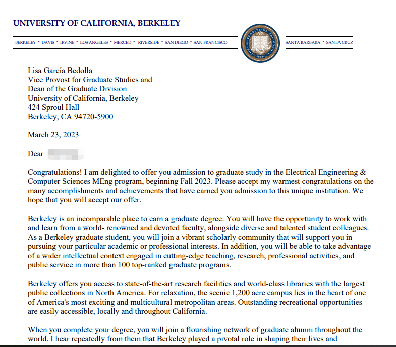 加州大学伯克利分校Master of Engineering (M.Eng.) EECS 硕士 20230323