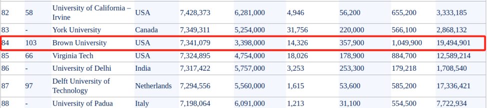 细看布朗和达特茅斯的每个指标,其实都算不上好,在各个层面上都非常“低调”。