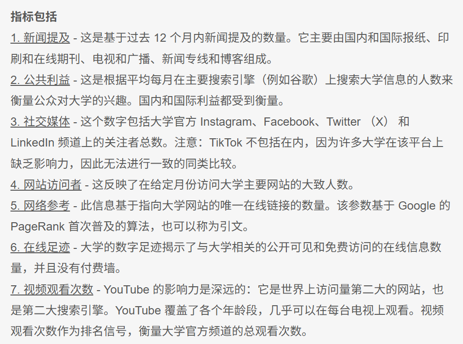 它的部分指标涉及海外网站点击量,展示的是话题度和知名度。