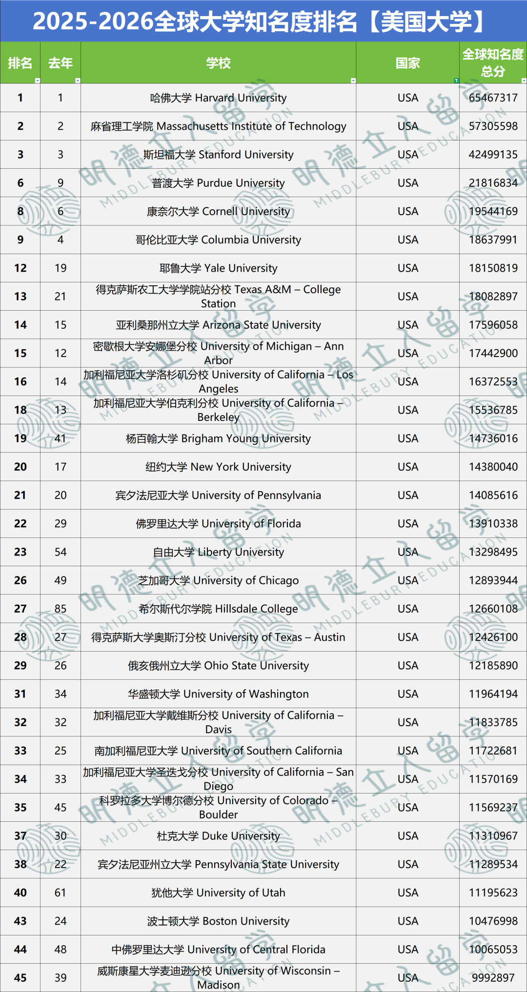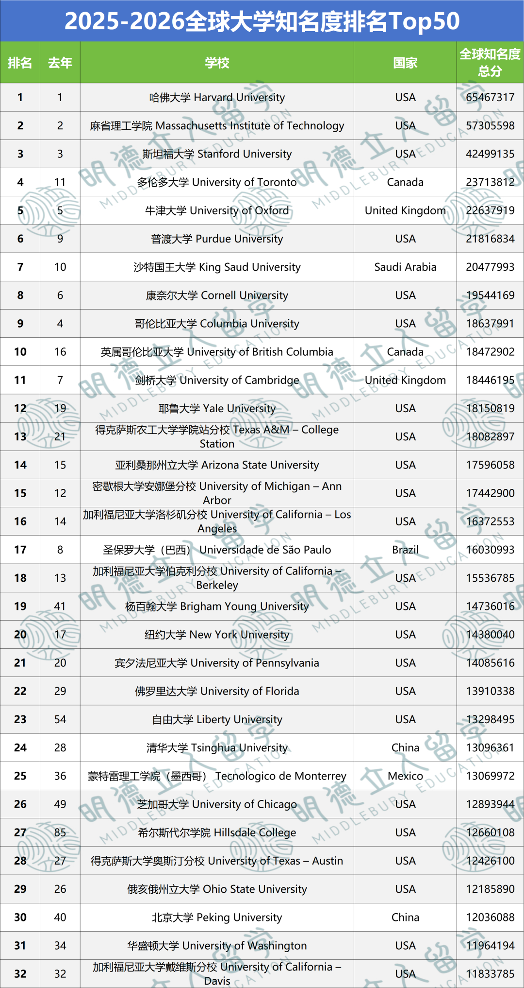 高等教育研究网站American Caldwell 把知名度量化分析,公布《2025-2026全球大学知名度排名》,让我们看看真实的“顶流”有哪些?