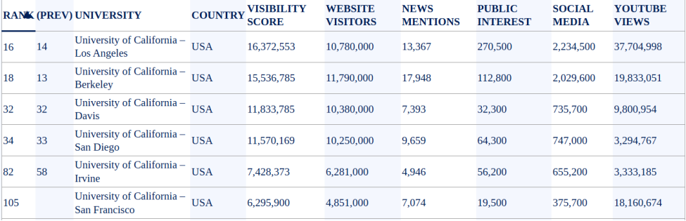 在今年知名度中排名#13,甚至超越了UC系的学校。