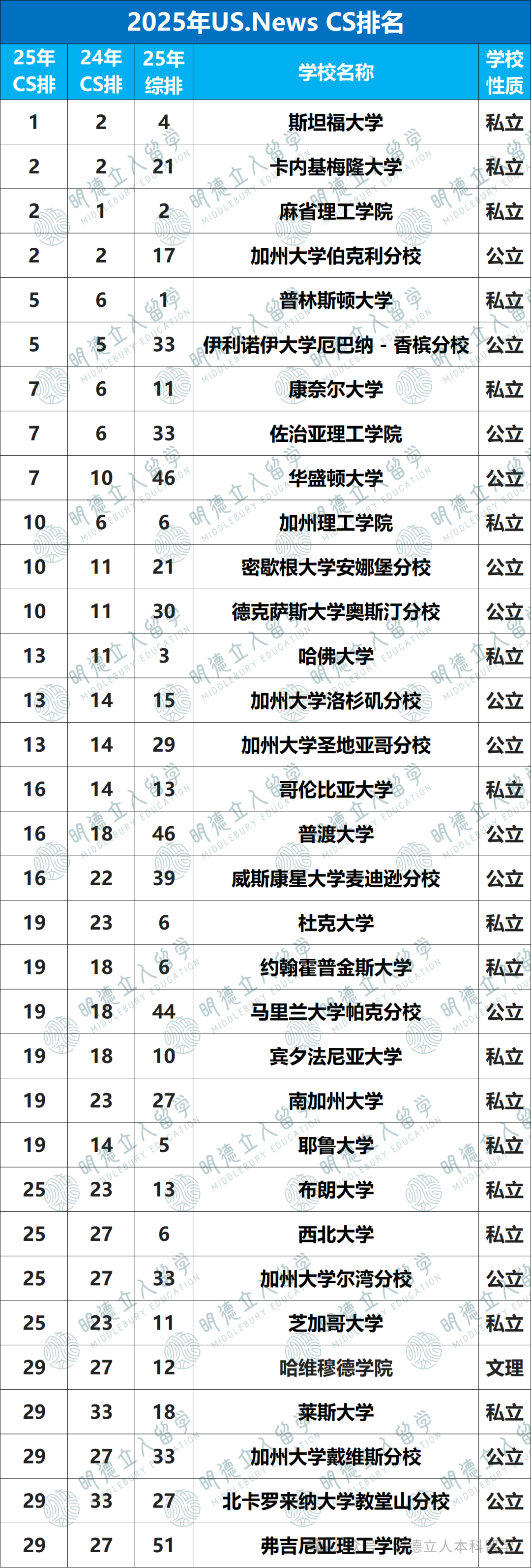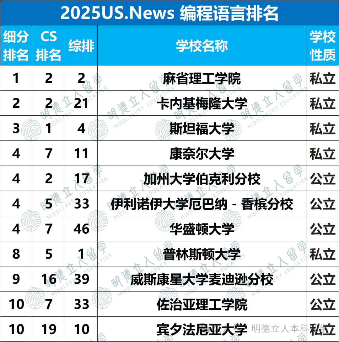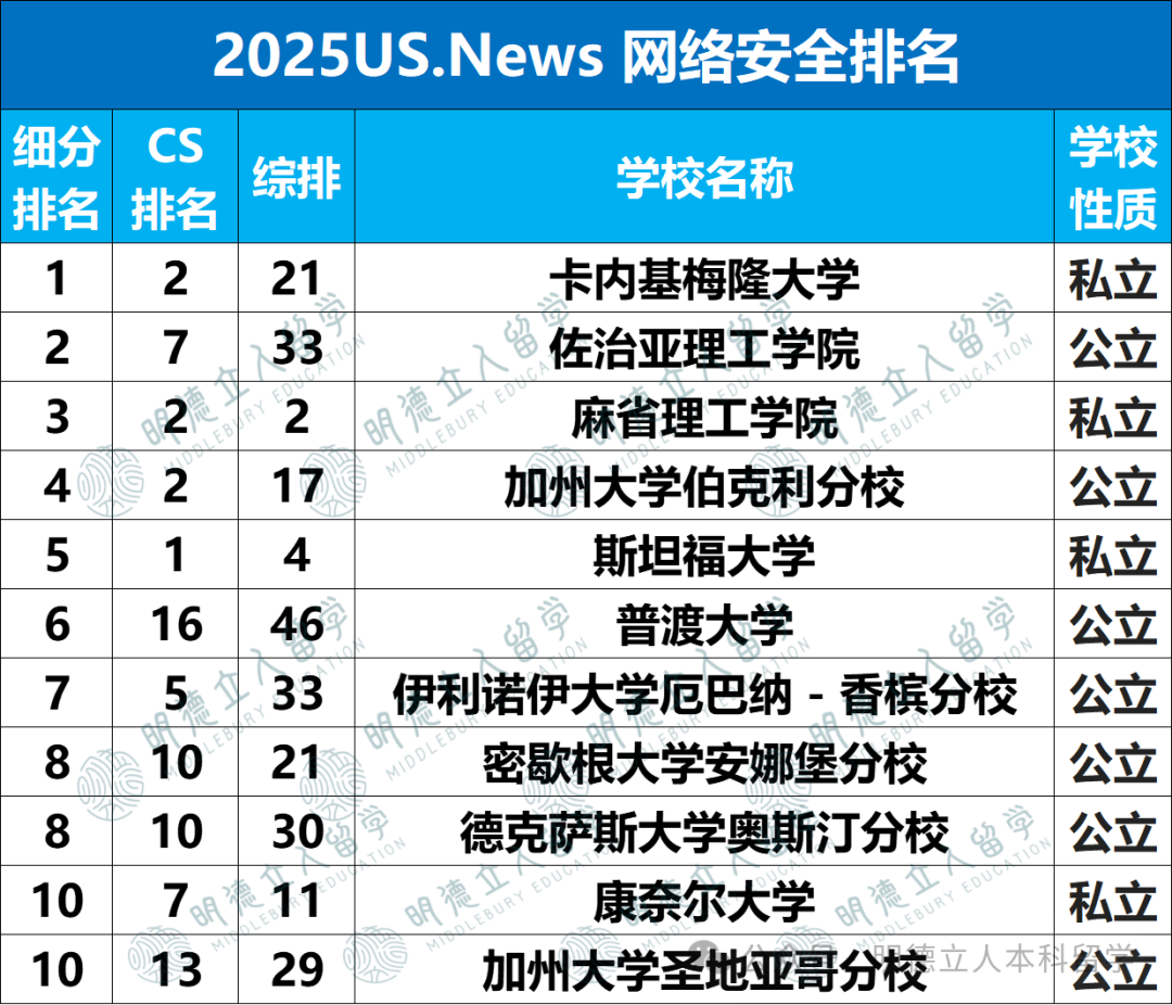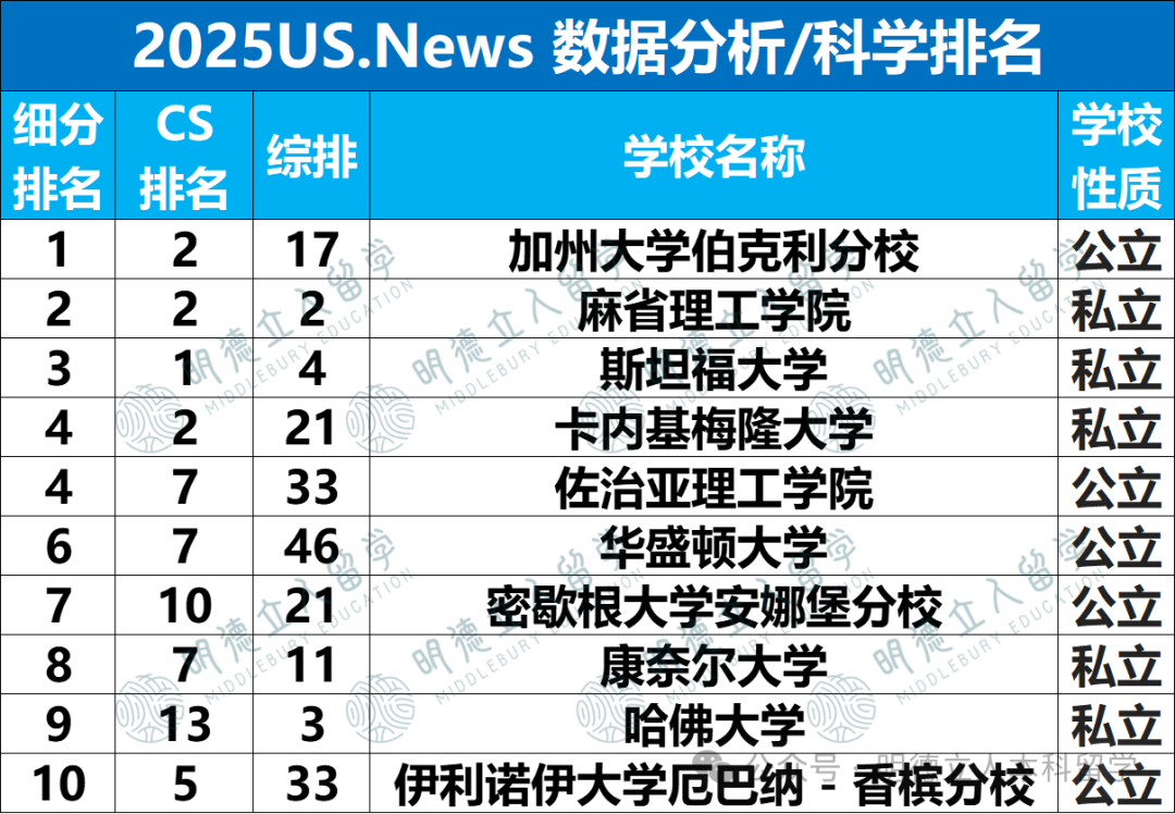 以上就是US.News 2025美国最佳本科专业中24个细分专业的大学排名情况。