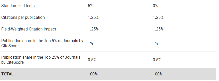 和去年的关键指标对比,今年的排名指标和权重也与去年相同。