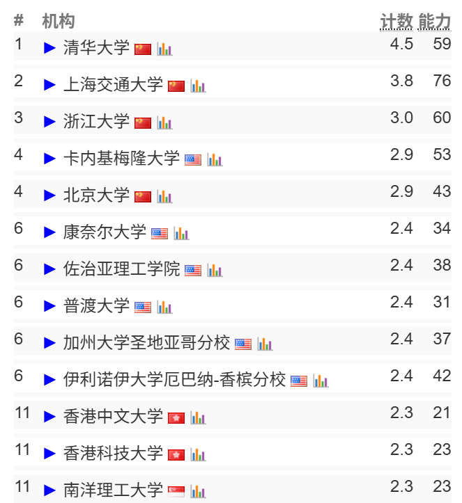 在这一季的榜单中,清华大学依旧保持第一!打败了连续登顶13年的卡内基梅隆大学。