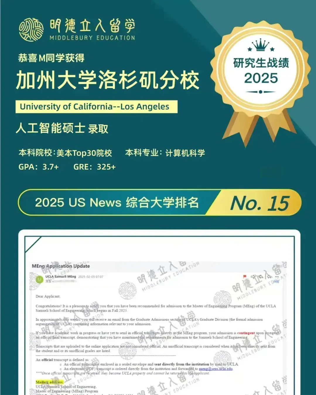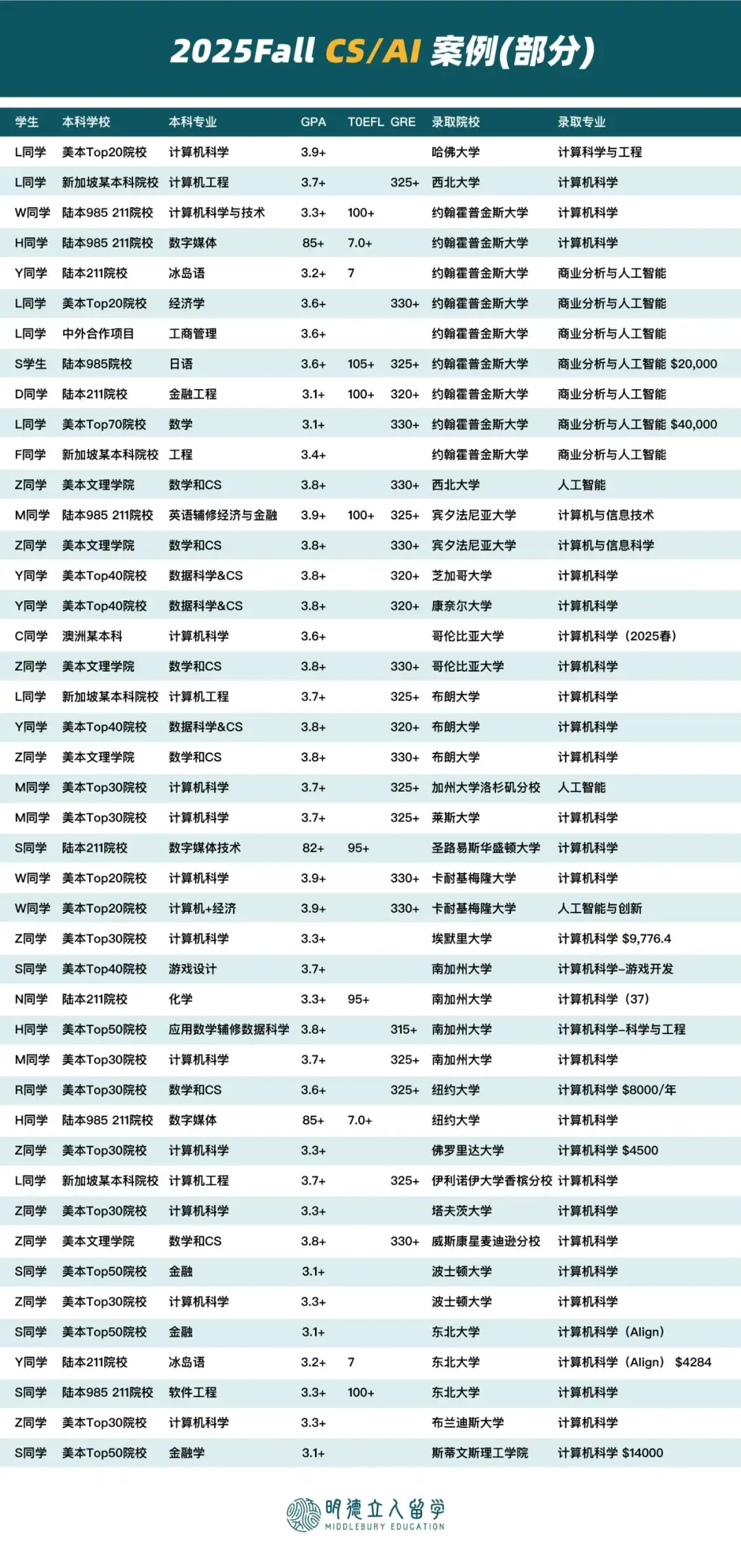 下面还有明德25Fall年成功申请美国CS研究生的部分成功案例,大家可以匹配自己的情况作为参考: