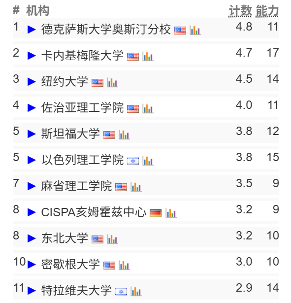 让人叹服的是亚利桑那州立大学(US.News综排121)、中佛罗里达大学(US.News综排121)、乔治梅森大学(US.News综排109)在CS Rankings中均进了前30的大门。